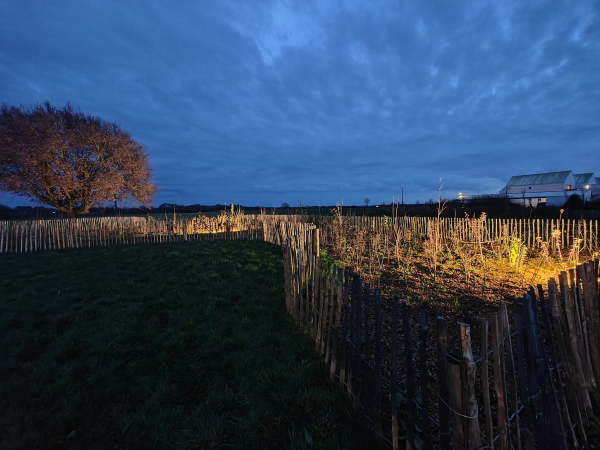 Première tranche d'un projet ambitieux supprimant l'enrobé, proposant une distribution de fonctions non genrées, introduisant la biodiversité sur ce site initialement stérile et générant des îlots de chaleur dans les classes. La micro-forêt a été plantée par les élèves, un couloir gourmand longe la cantine, et une partie des aménagements a été réalisée par les services techniques de la ville.